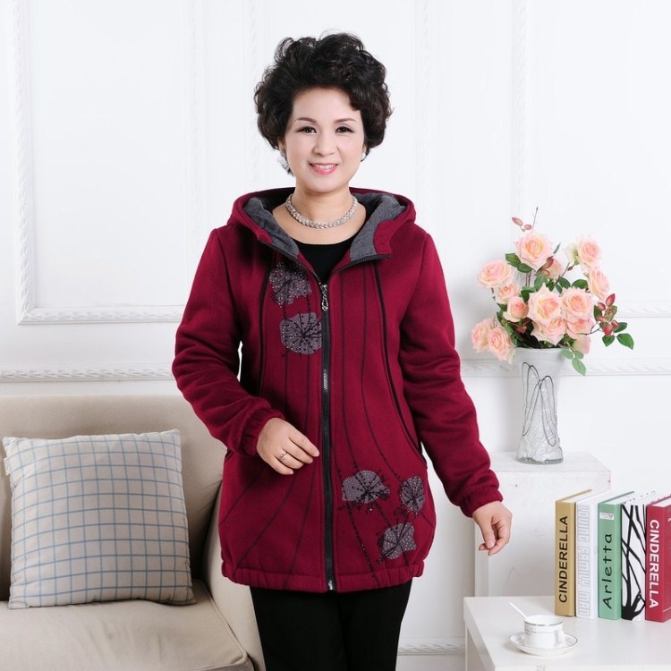 中老年女外套秋冬裝中年衛(wèi)衣絨衫胖媽媽加肥加大加厚中長款媽媽裝 /