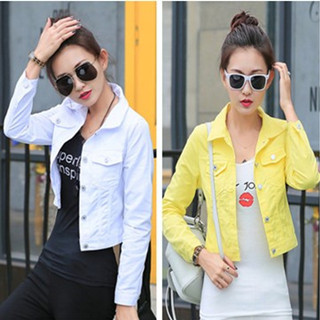 韓版秋冬裝新款時尚女裝水洗牛仔上衣外套長袖糖果色牛仔外套 /