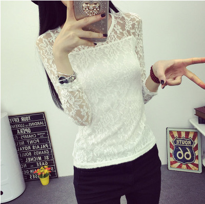 秋冬新款韓版大碼蕾絲打底衫女式長袖圓領(lǐng)蕾絲上衣 廠家直銷 /