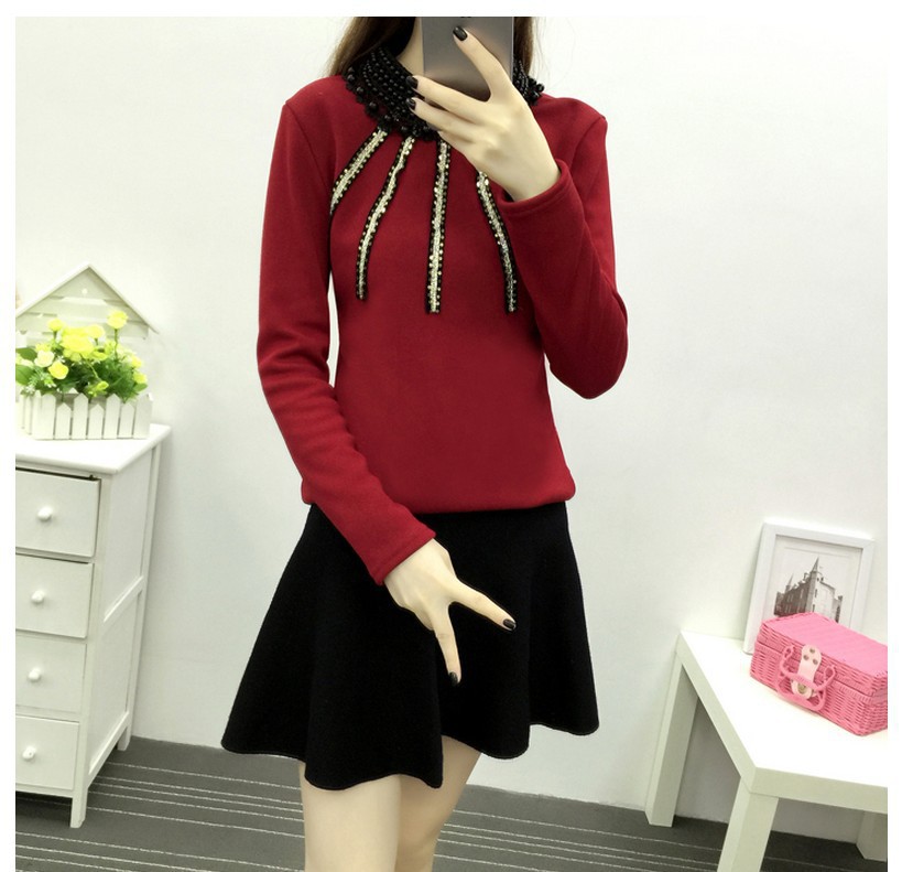 2015加絨蕾絲衫女新款女裝秋冬上衣加厚百搭長袖打底衫 /