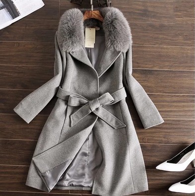 冬裝羊絨呢子大衣毛呢外套女中長款真狐貍大毛領(lǐng)修身 /