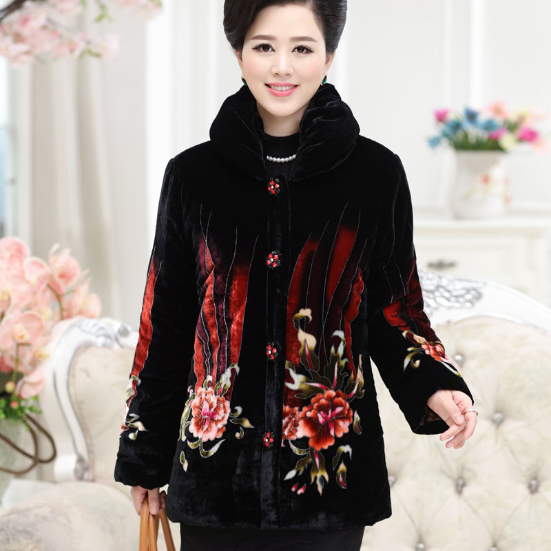 絲絨棉衣2015新款媽媽裝 中老年人印花加厚保暖棉服 廠家批發(fā) /