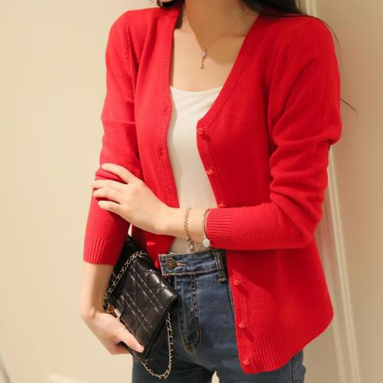 emoda韓版春秋新款V領(lǐng)修身百搭女裝針織衫毛衣外套開衫空調(diào)衫披肩 /