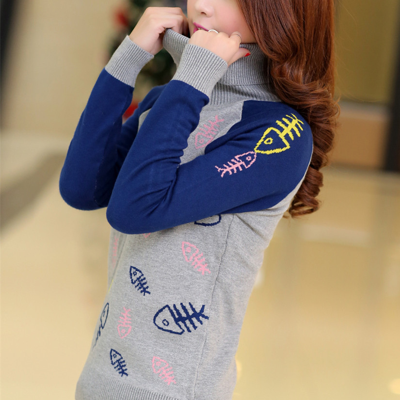 新款秋冬韓版純羊毛女套頭毛衣全羊毛提花魚骨高領(lǐng)長(zhǎng)袖打底衫批發(fā) /