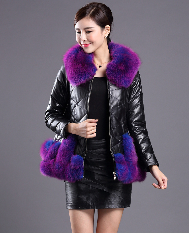 海寧2015秋冬新款真皮皮衣女士皮衣羽絨服外套狐貍毛領(lǐng)短款修身 /