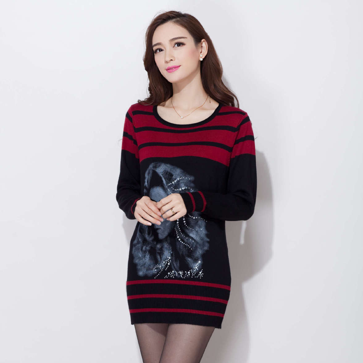 【火拼】秋冬新款精品女裝韓版美女條紋中長款針織衫 毛衣女批發(fā) /