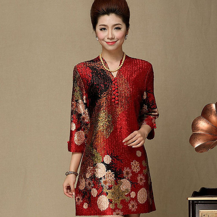 中老年女裝結(jié)婚宴媽媽裝婚慶禮服中年婦女唐裝寬松大碼秋裝連衣裙 /