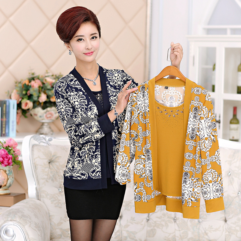 2015中老年女裝秋裝新款 時(shí)尚媽媽裝外套女假兩件 中年女開衫特價(jià) /