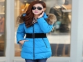 2015新款 加大碼帶腰帶大毛領(lǐng)媽媽裝加厚棉服外套 女式棉衣 /