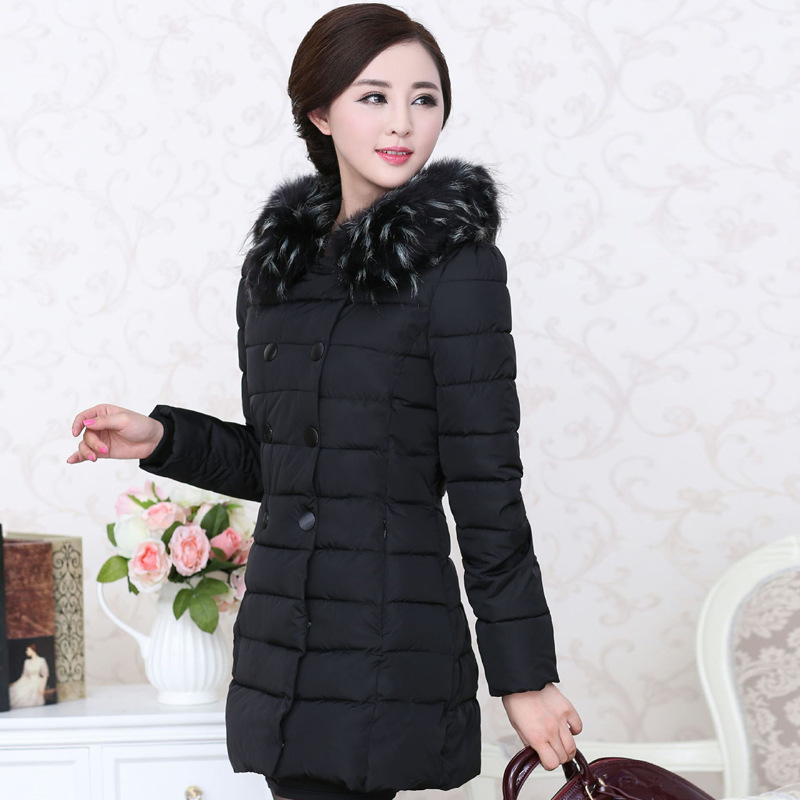 中長款女裝休閑棉衣中年媽媽裝大碼外套加厚中長款毛領(lǐng)羽絨服 /