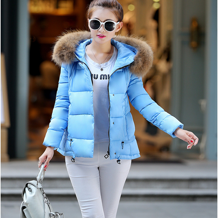 羽絨棉服女2015新款韓版時尚修身顯瘦純色A字短款連帽大毛領(lǐng)棉衣 /
