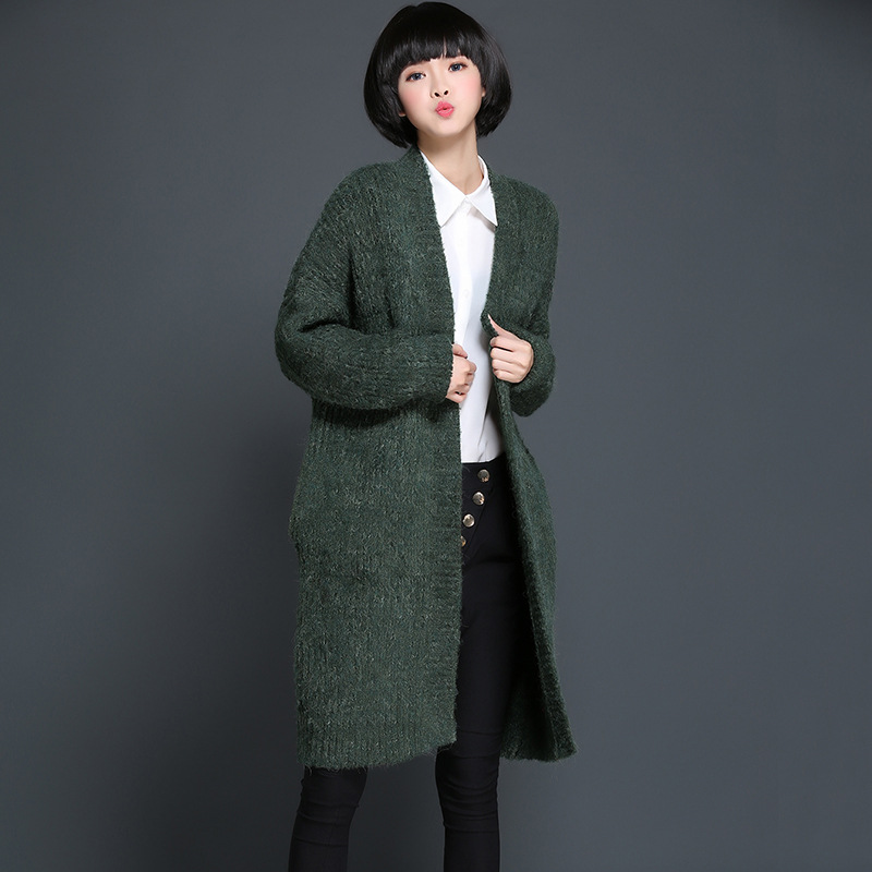 2015秋冬休閑風(fēng)女裝外套新款 中長款純色長袖V字領(lǐng)針織開衫 /