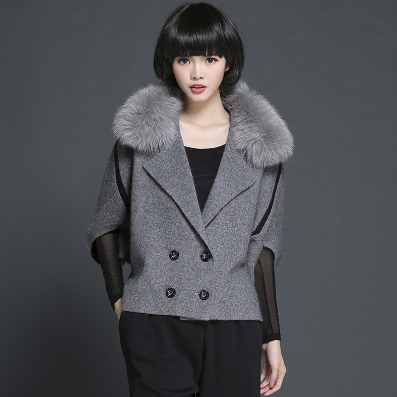 歐美風(fēng)時(shí)尚百搭純色百搭狐貍毛領(lǐng)雙排扣女士貂絨小外套 秋冬新款 /
