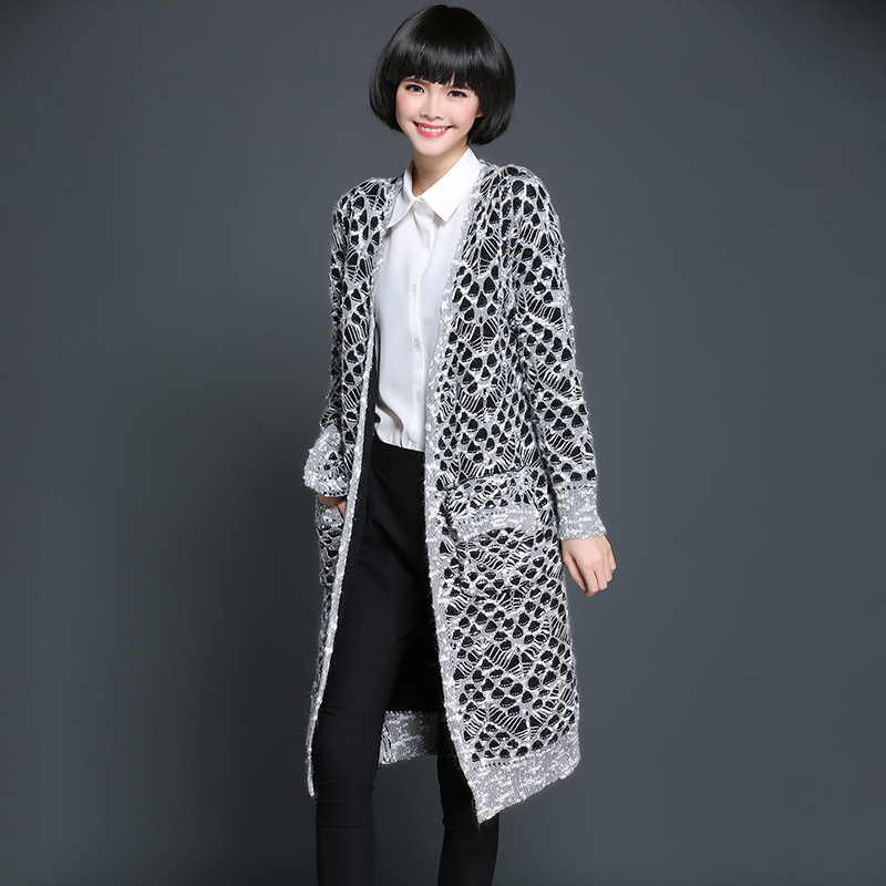 2015秋冬針織衫熱銷款 V字領(lǐng)長袖長款有口袋厚款女式外套 休閑風(fēng) /