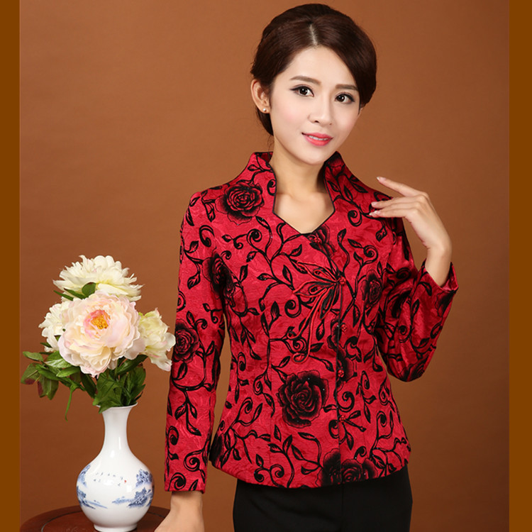 女士上衣秋裝 長袖中式改良民族服飾媽媽裝 春秋中老年女裝氣質(zhì) /