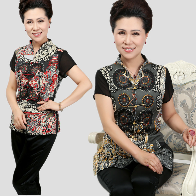 女士唐裝夏裝 短袖中老年民族服飾中式改良唐裝立領(lǐng)媽媽裝 /