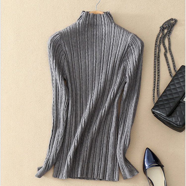 歐美原創(chuàng)2015秋裝新款高領(lǐng)長袖彈力羊毛針織修身上衣打底衫女士 /