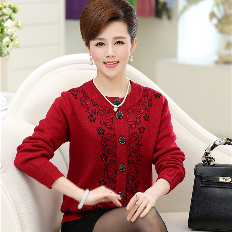 15秋冬新款中老年女裝羊毛開衫大碼媽媽毛衣羊絨奶奶裝針織衫外套 /