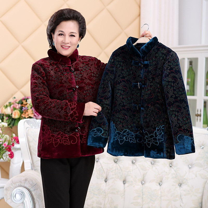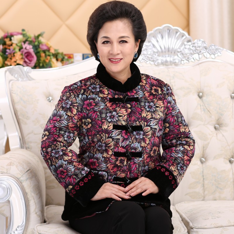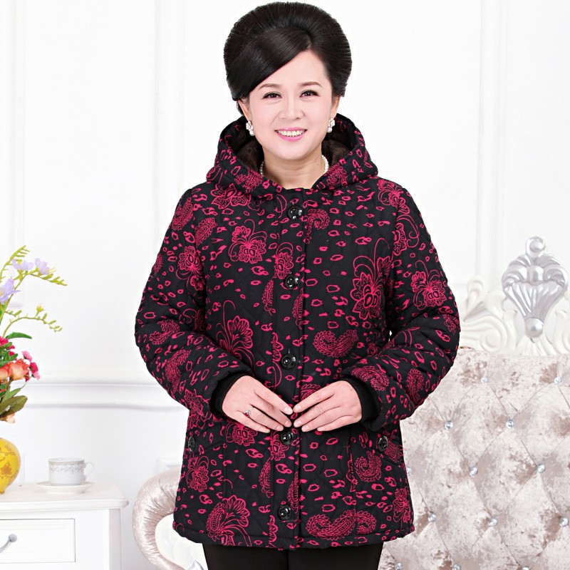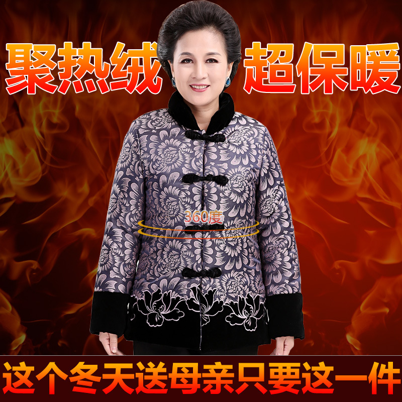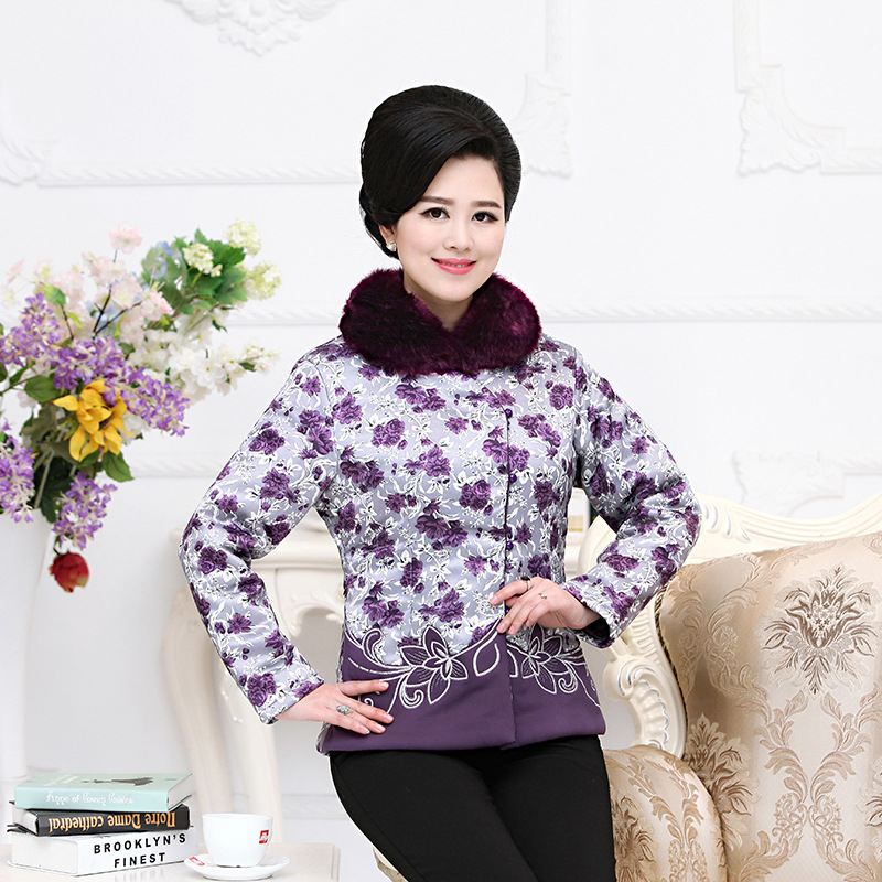 2015年中老年新款棉衣 時(shí)尚印花加絨加厚寬松媽媽裝棉衣一件代發(fā) /