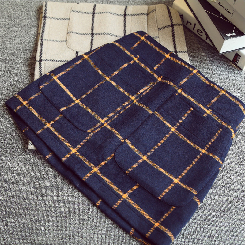 2015新款秋冬韓版顯瘦高腰半身包臀格子A字短裙女 /