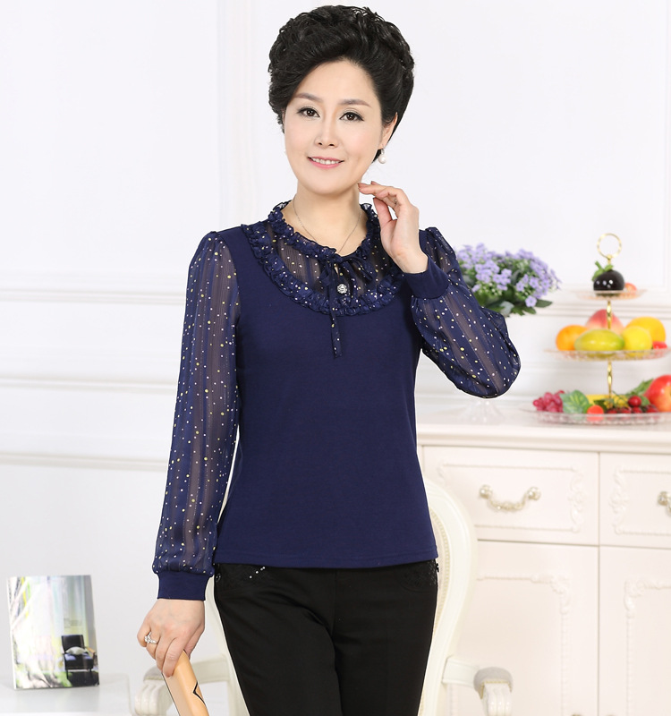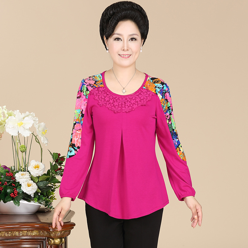 2015新款中老年女裝長(zhǎng)袖t恤媽媽裝 春秋季時(shí)尚大碼中老年打底衫 /