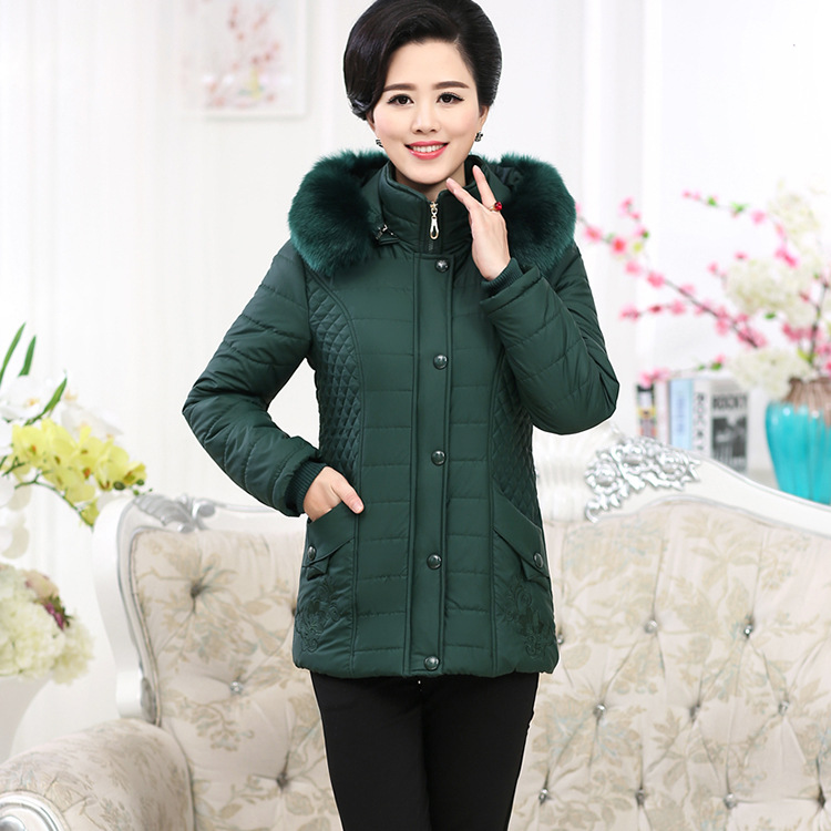 2015年冬新款女裝 休閑大碼中老年女裝 加厚連帽媽媽裝棉衣批發(fā) /