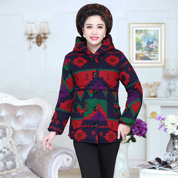 2015冬季新款加厚棉服中老年女裝棉衣媽媽裝印花大碼中年棉襖批發(fā) /