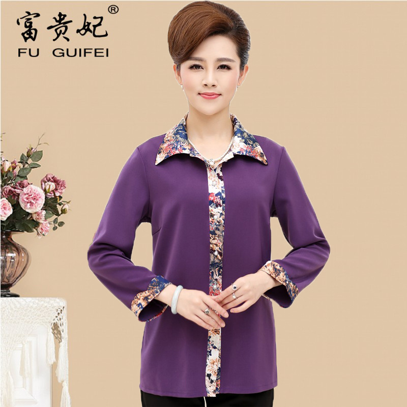 批發(fā)中老年女裝秋裝翻領(lǐng)大碼長袖T恤媽媽裝秋季新款打底上衣批發(fā) /