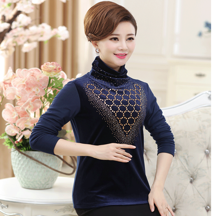 2015冬季韓版修身中年女士打底衫 金絲絨高領(lǐng)長袖T小衫 媽媽上衣 /