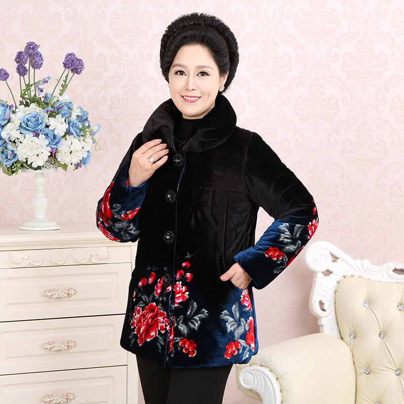 2015冬季中老年棉衣媽媽裝中長款金絲絨印花外套棉襖特價甩賣 /