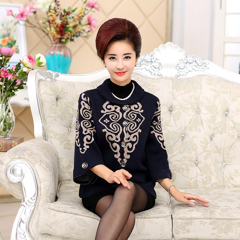 秋季新爆款中老年女裝九分袖針織衫印花羊毛衫媽媽裝時尚毛衣批發(fā) /