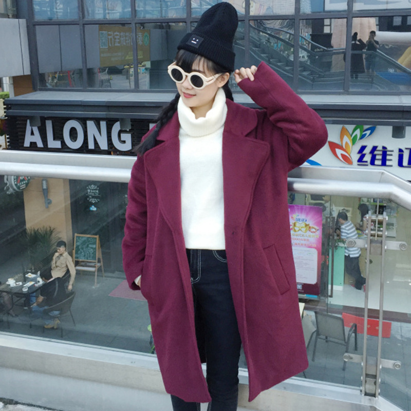 實(shí)拍圖女裝復(fù)古寬松廓形呢大衣長款毛呢外套女1615 /