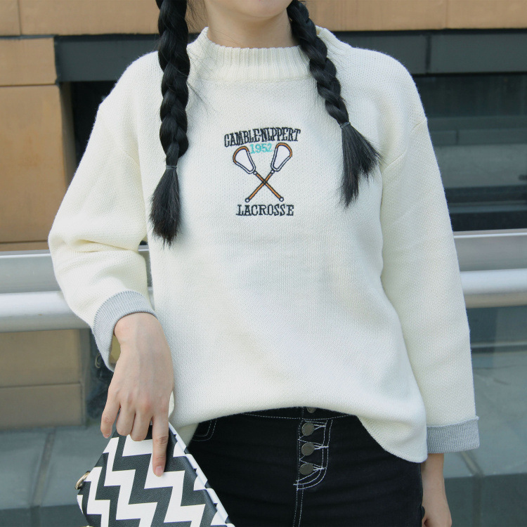 實(shí)拍圖甜美刺繡打底衫女裝新款針織衫字母圖案毛衣1595 /