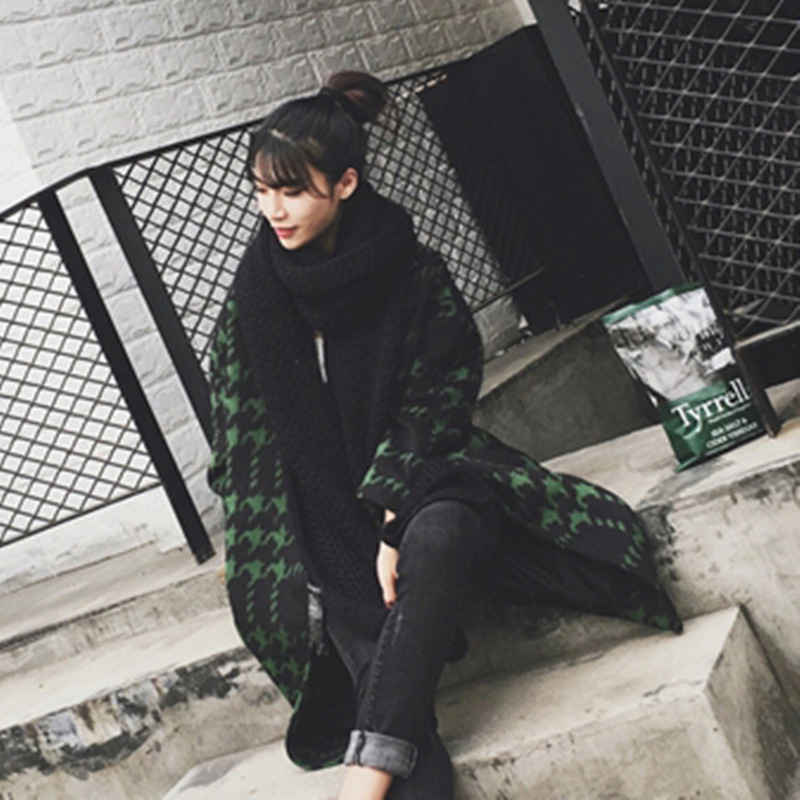 冬季新款韓版女裝千鳥格呢大衣寬松長款毛呢外套女 1613 /