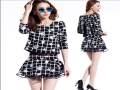 新款格子印花時(shí)尚套裝女蕾絲小香風(fēng)上衣短裙 /