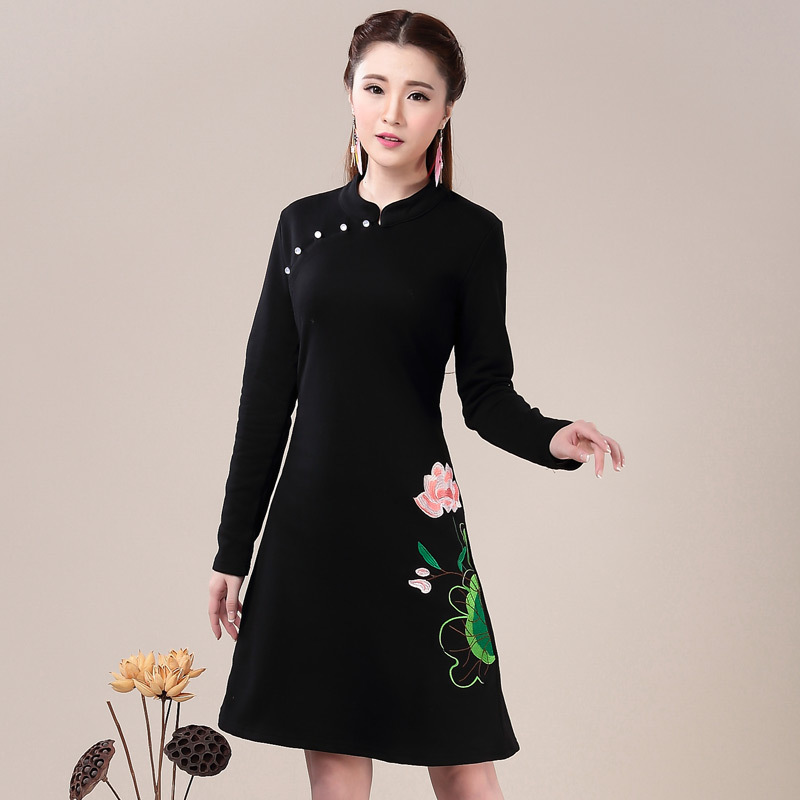 實(shí)拍 旗袍裙改良 秋冬裝女士打底裙顯瘦修身長袖連衣裙旗袍 /