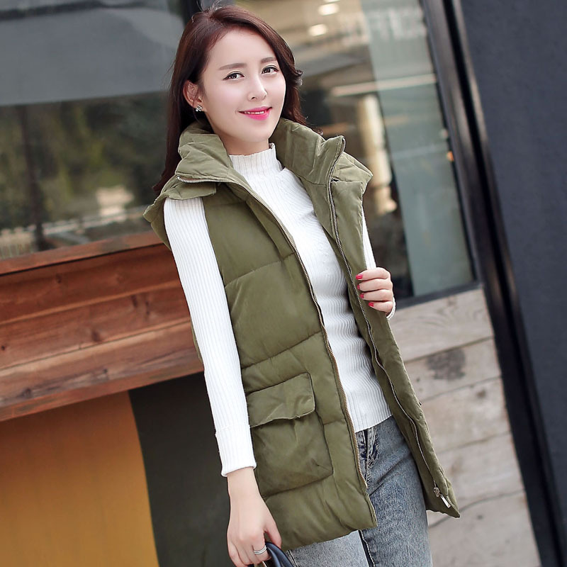 實(shí)拍2015冬季新款韓版時(shí)尚休閑修身馬甲中長款連帽女羽絨服棉衣 /
