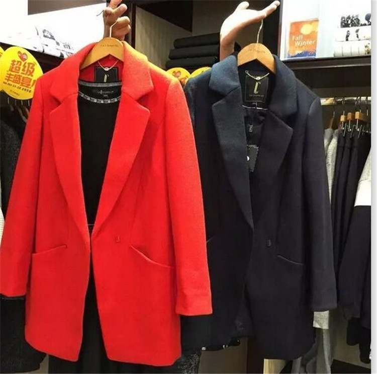 原單2015冬季新款時(shí)尚休閑潮流女式長款毛呢外套大衣10007980 /