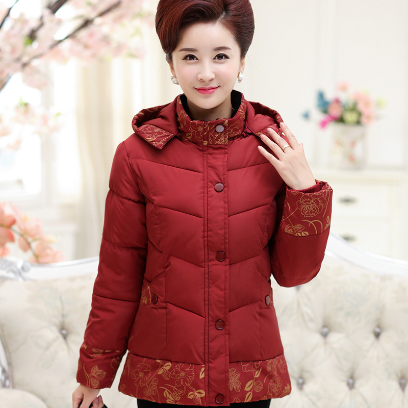 2015冬季新款中老年女裝棉衣時(shí)尚大碼媽媽裝中年加厚連帽棉服外套 /