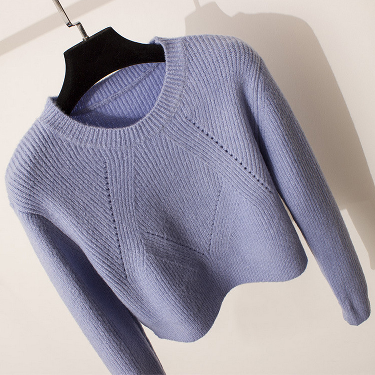 廠家直銷 冬季新款韓版加厚短款針織衫 學院風圓領長袖套頭毛衣 /