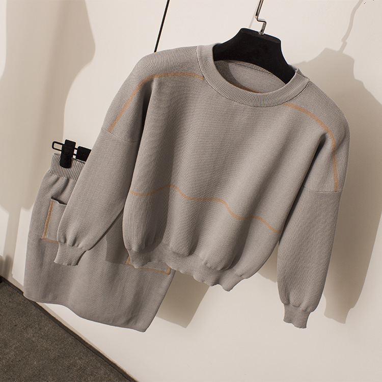 2015秋冬新款韓版修身撞色針織衫女休閑兩件套裝口袋套裙LL11232 /