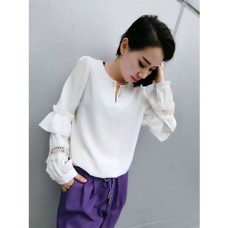 微信貨源 2016早春新款女裝韓版高品質(zhì)荷葉袖鏤空雪紡衫代理加盟 /