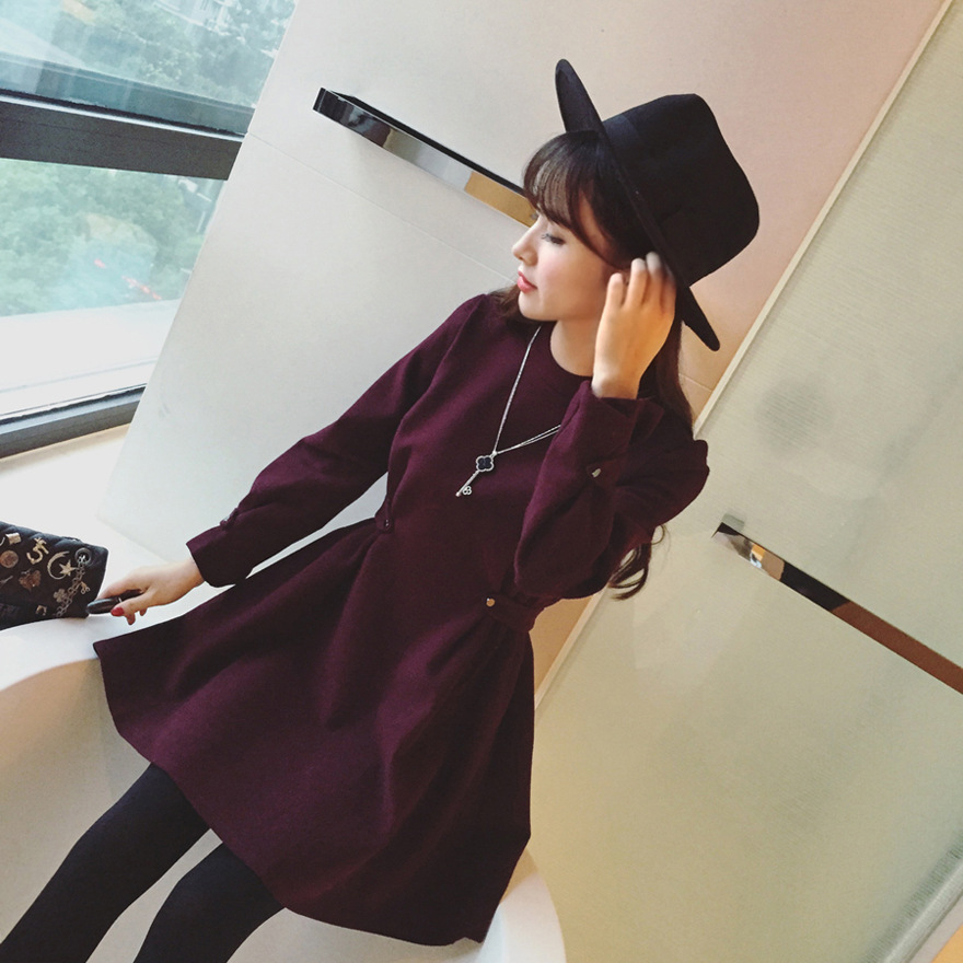 冬季新款顯瘦羊絨毛呢料修身收腰圓領(lǐng)加厚長(zhǎng)袖連衣裙子女A0869 /