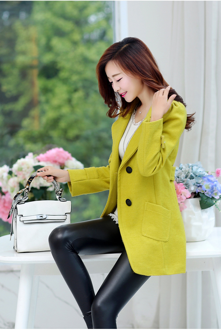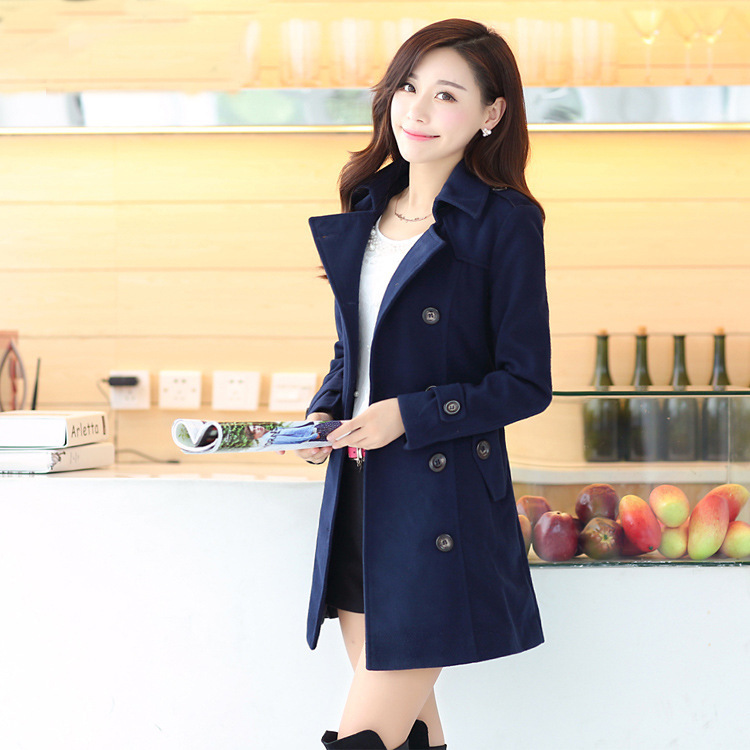 2015秋冬新款女式韓版修身中長款雙排扣毛呢大衣外套女爆款 /
