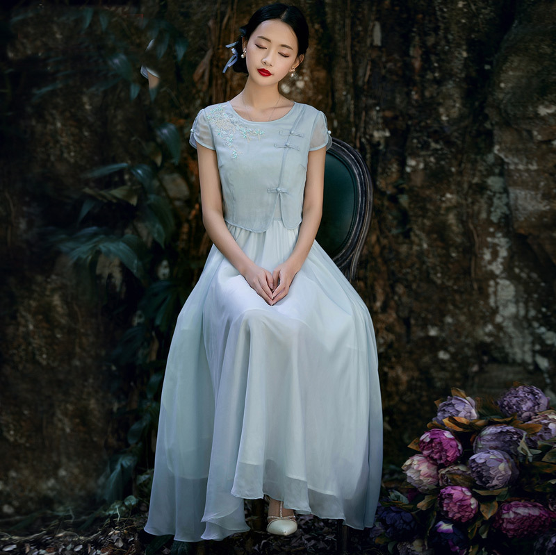 簡介: 貨源類別現(xiàn)貨 主圖來源實拍有模特 風(fēng)格復(fù)古 圖案花朵 工藝刺繡/繡花 產(chǎn)地東莞 款式基本款 組合形式假兩件 裙長長裙 裙型大擺型 領(lǐng)型圓領(lǐng) 袖型常規(guī)袖 袖長短袖 腰型中腰 衣門襟套頭 流行元素刺繡 上市年份/季節(jié)2015夏季 面料名稱雪紡 主面料成分棉 主面料成分的含量85(%)
