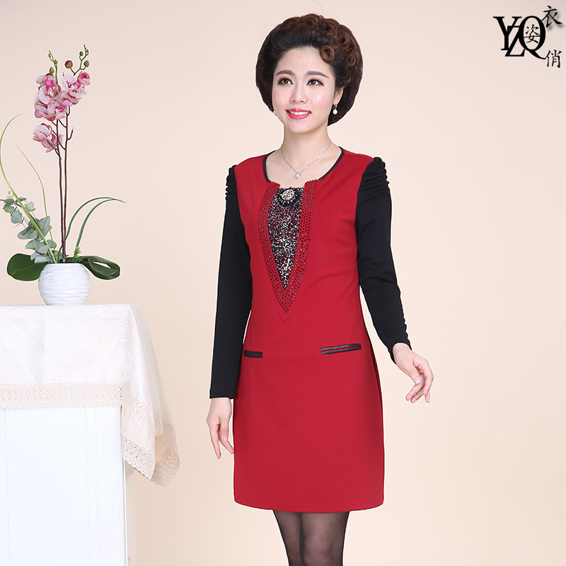 2015春秋新款中年大碼長袖韓版女裝婚慶媽媽裝40-50歲修身連衣裙 /