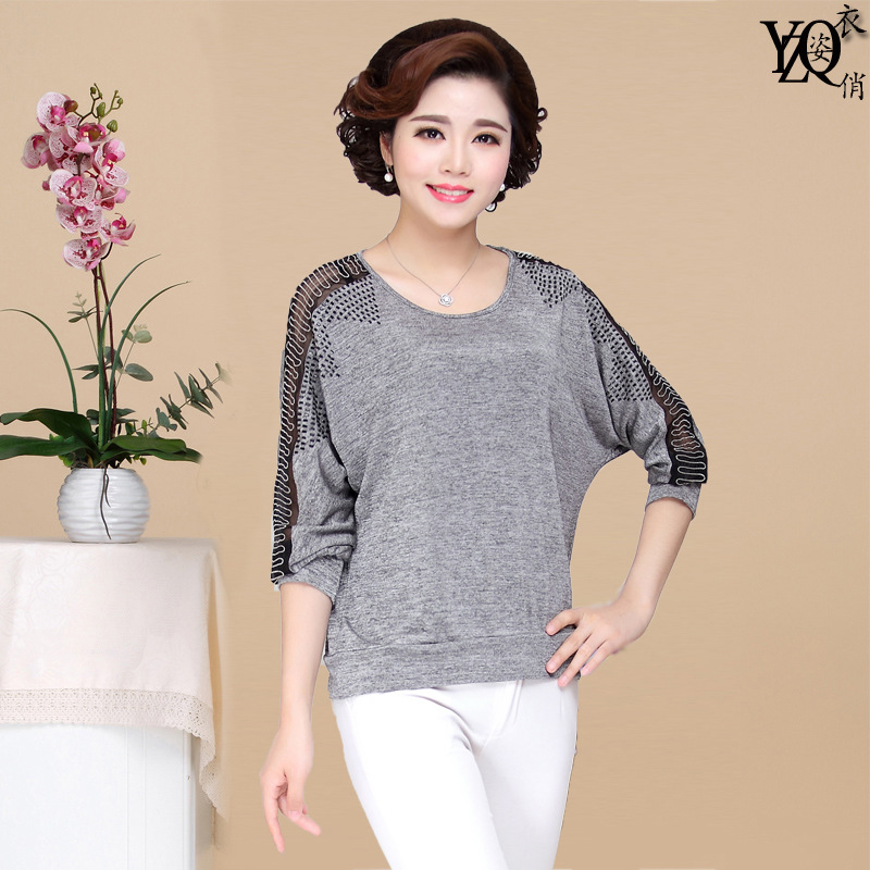中老年女裝夏裝新品T恤媽媽裝七分袖打底小衫冰絲鏤空針織衫上衣 /