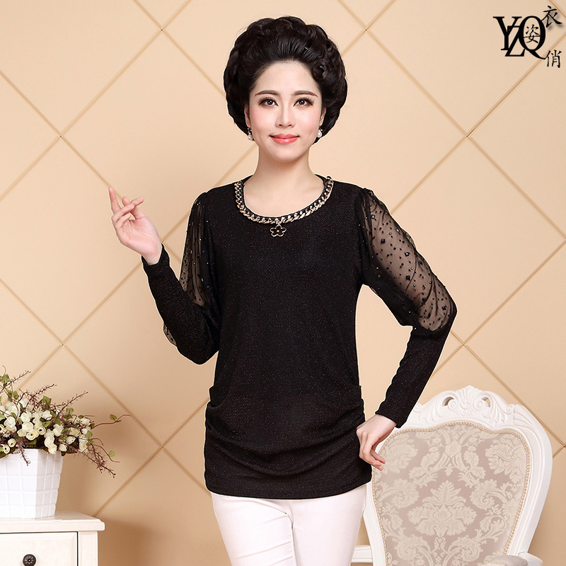 中老年女裝夏裝長袖襯衫40-50-60歲媽媽裝t恤大碼秋季新品上衣 /