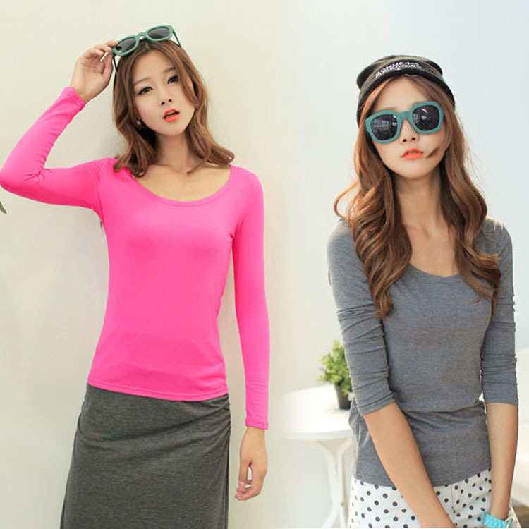 2015春裝新款牛奶絲修身女士打底衫長袖 棉質(zhì)圓領(lǐng)T恤 批發(fā)直銷 /