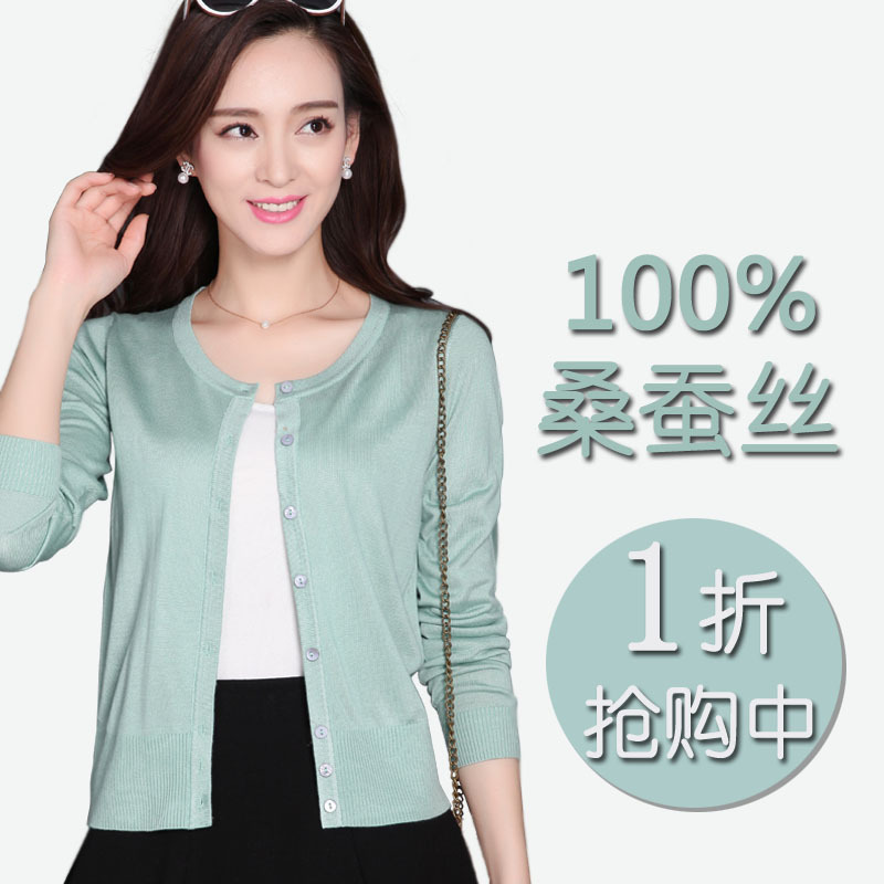 2015春夏裝新款韓版寬松桑蠶絲針織女開衫長袖圓領(lǐng)薄開衫短外套女 /